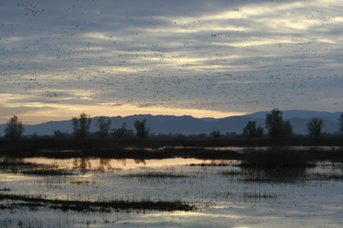 Leaving Chico in the early afternoon will give us plenty of time to stop and look for geese, swans, and cranes at the Llano Seco Unit of the Steve Thompson North Central Valley Wildlife Management Area on our way to the Sacramento National Wildlife Refuge. We will arrive at the refuge in time to study the ducks and geese using the area and then witness thousands of birds silhouetted against the sunset sky as they leave the refuge in their spectacular 'fly-off'. Bring binoculars, and a scope (if you have one) and wear layered clothing for winter. Photographers are welcome to bring their equipment. Sponsored by Friends of Sacramento National Wildlife Refuge. Carpooling strongly encouraged.